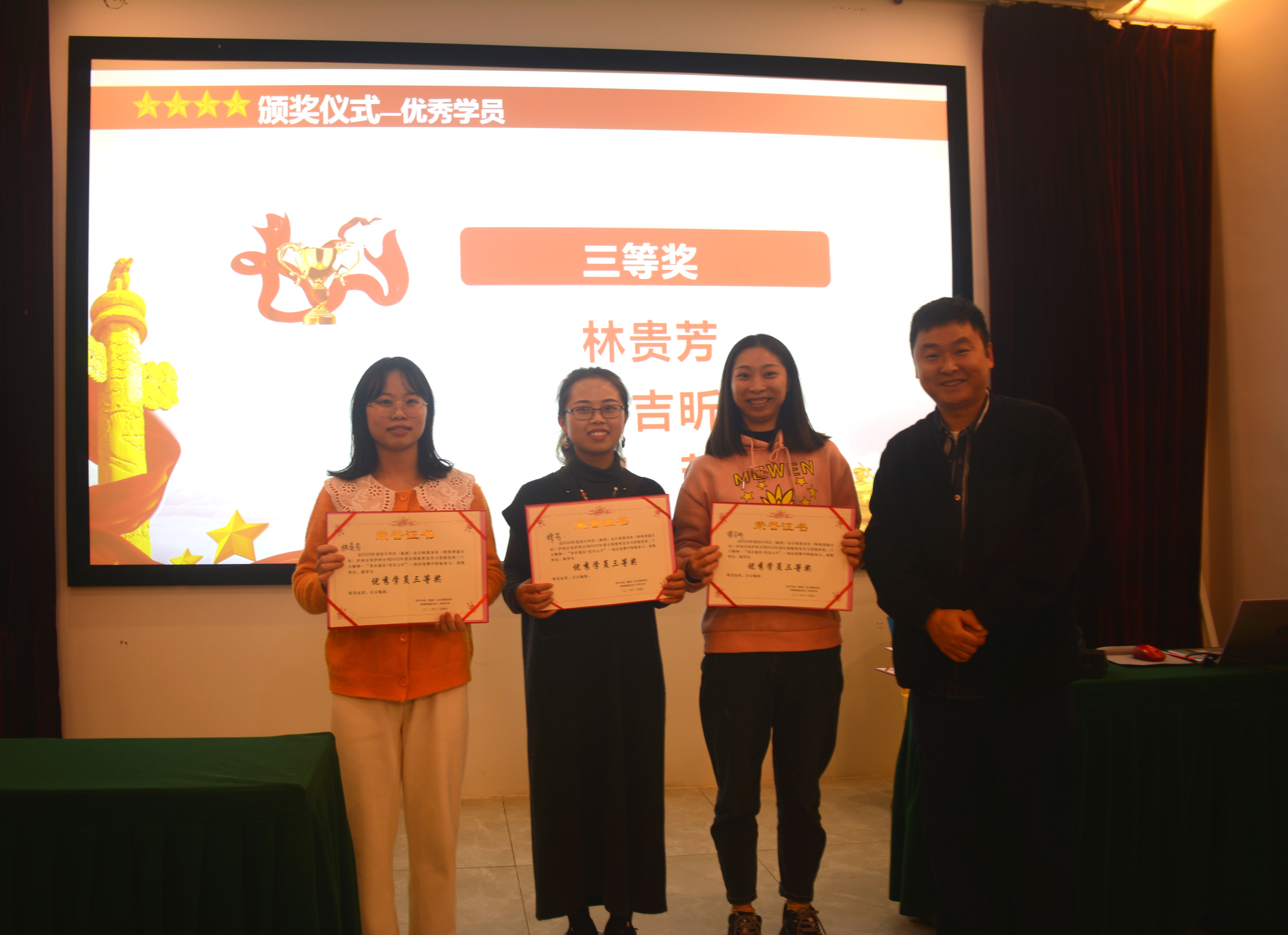 培訓(xùn)臨近結(jié)束,通過知識競賽搶答的形式對學(xué)員們培訓(xùn)的效果進(jìn)行測試,評選出優(yōu)秀黨員、和優(yōu)秀學(xué)員和優(yōu)秀講師并舉行了頒獎典禮。